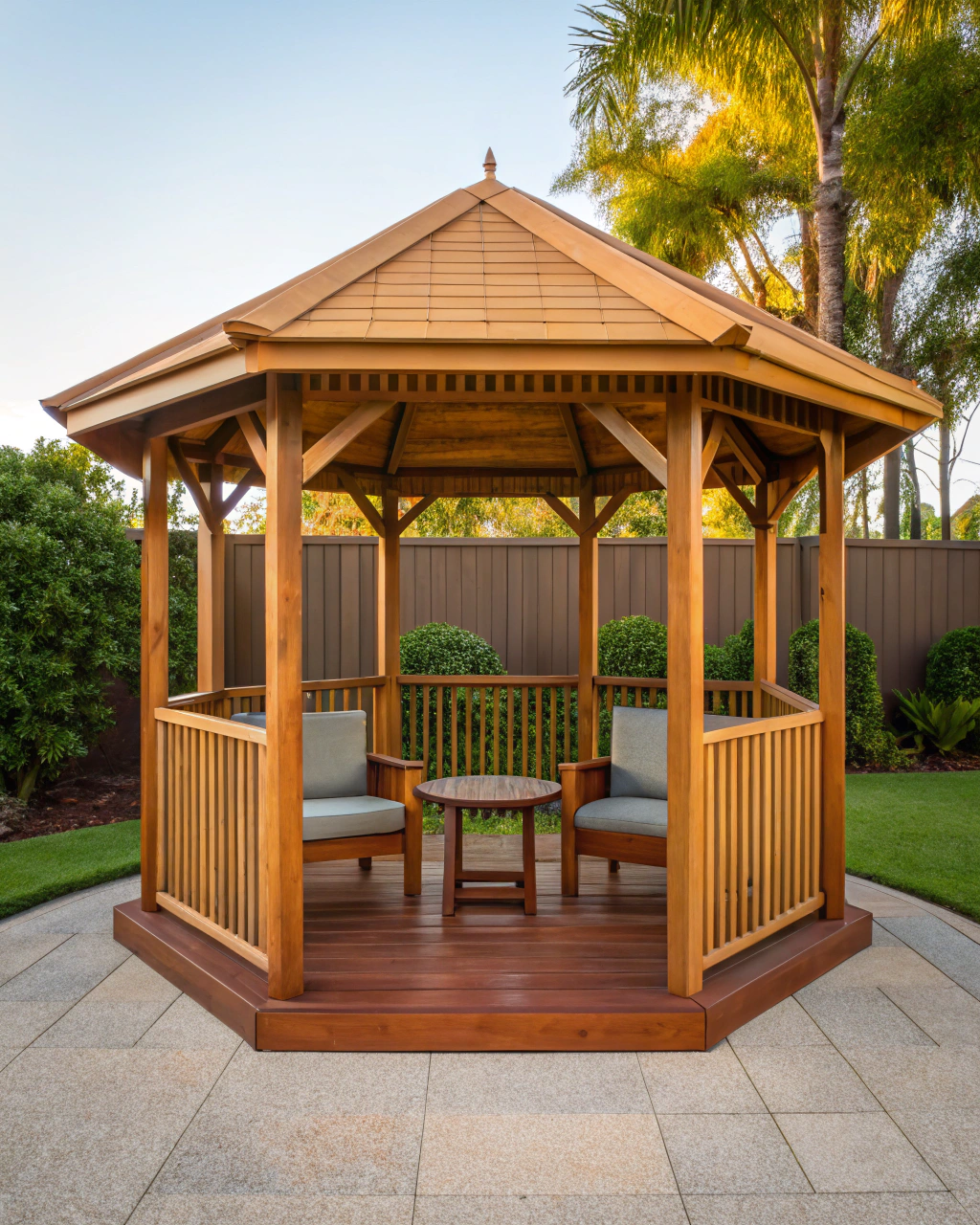 Absolutely. We design timber gazebos to complement Victorian, Federation, contemporary, or any architectural style. Our custom approach includes decorative elements, roof configurations, and proportions that harmonise with your existing property character and garden theme.